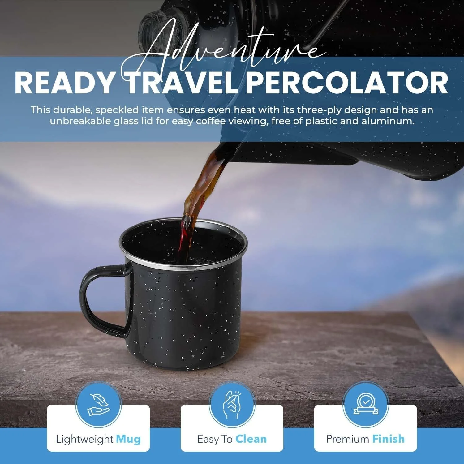 Toughty Classic Percolator Coffee Pot with 4 Enamel Mugs and Stainless Steel Filter